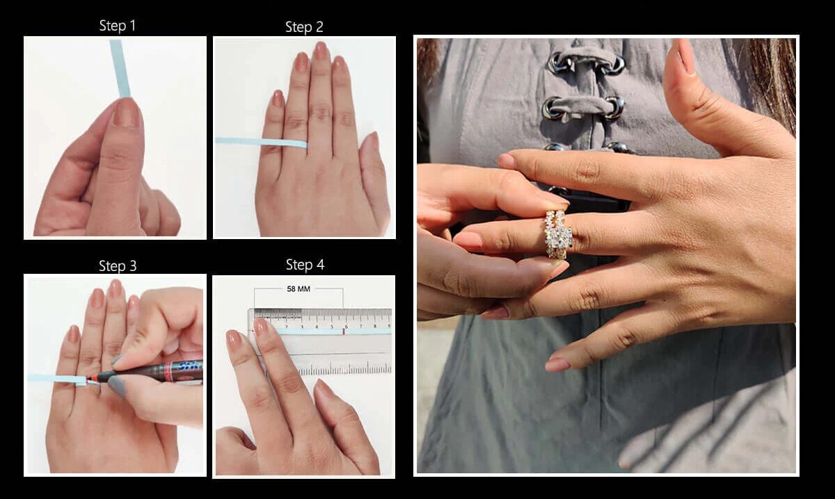 To get your ring size, first wrap a string or a piece of paper around your finger. Then mark the size of your finger circumference. The next step is to measure the marked value with a ruler or meter. Enter your figure in millimeters in the form below.